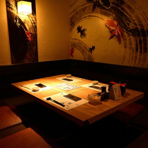 ゆったり寛げる完全個室は幅広い場面にオススメ!鮮やかな金魚が泳ぐ水槽付の個室は数に限りが御座います。